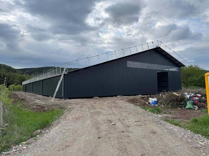 La dernière phase a concerné l’installation des ouvertures, comprenant portes et accès techniques nécessaires au bon fonctionnement du bâtiment agricole.